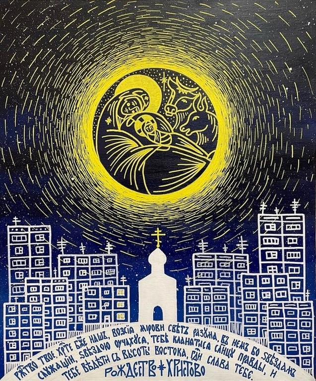 Известная российская художница Мария Шелест, работающая в стиле монохромной графики, по просьбе строителя нашего храма Вадима Степанова к престольному празднику создала необычную картину-икону святителя Иоанна, которая была отпечатана как открытка и роздана в день памяти святителя всем, пришедшим на службу в этот день в наш храм.